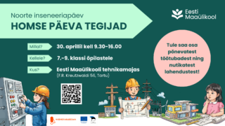 30. aprillil 2026 kell 9.30 – 16.00 toimub Eesti Maaülikooli tehnikamajas (F.R. Kreutzwaldi 56, Tartu) 7.-9. klassidele mõeldud TASUTA inseneeriapäev “Homse päeva tegijad”. Osaleda saab mitmetes põnevates töötubades ning tutvuda Eesti Maaülikoolis õpetatavate inseneeriaerialadega!